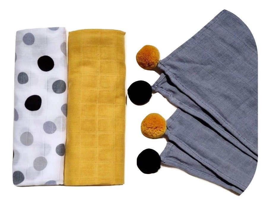 1 x puuvillased marlilapid pom-pomidega - 60x80 cm