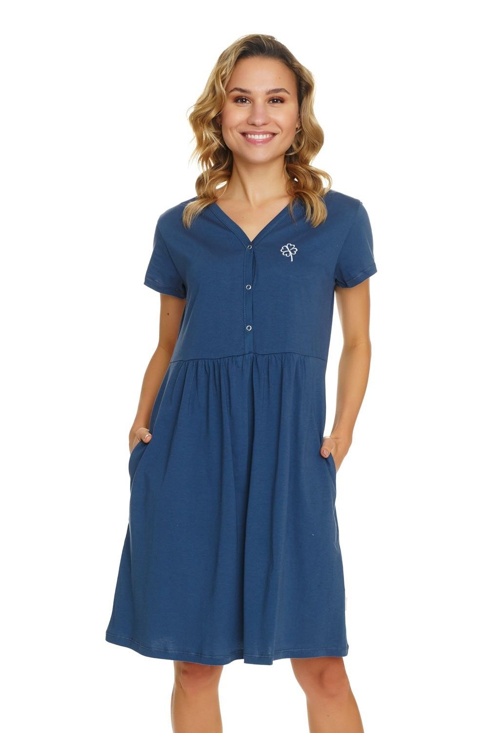 Puuvillane öösärk rasedatele naistele "Clover" deep blue Laos