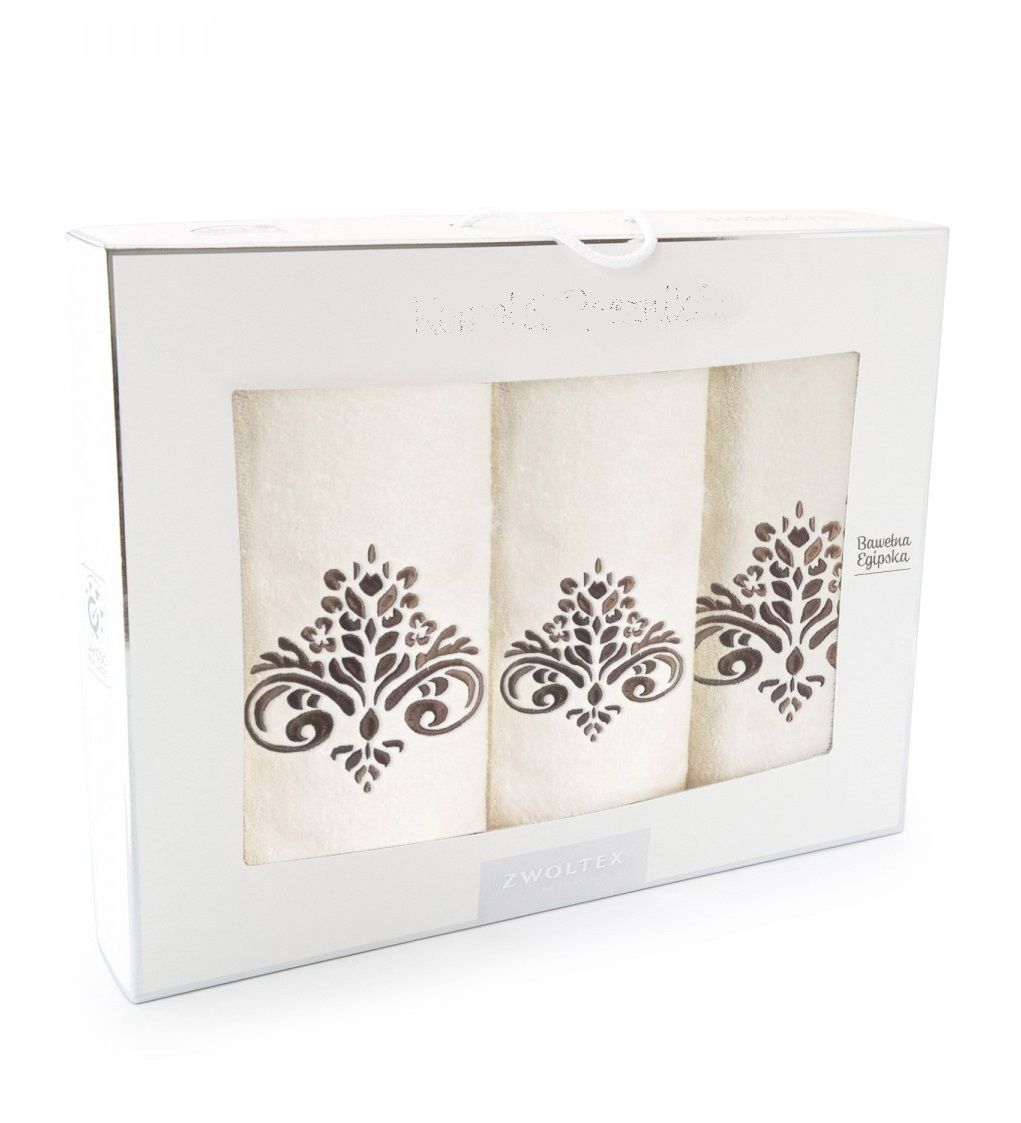 Rätikud (Egiptuse puuvill) "Flowers" 3 tk ekru värv