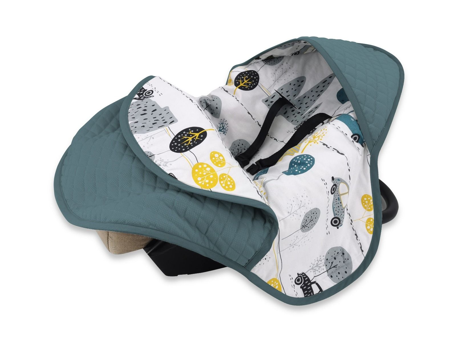 Одеяло для автокресла совместимо с большинством автомобильных сидений, подходит для сидений 0-13 кг с 3-точечными ремнями безопасности.
