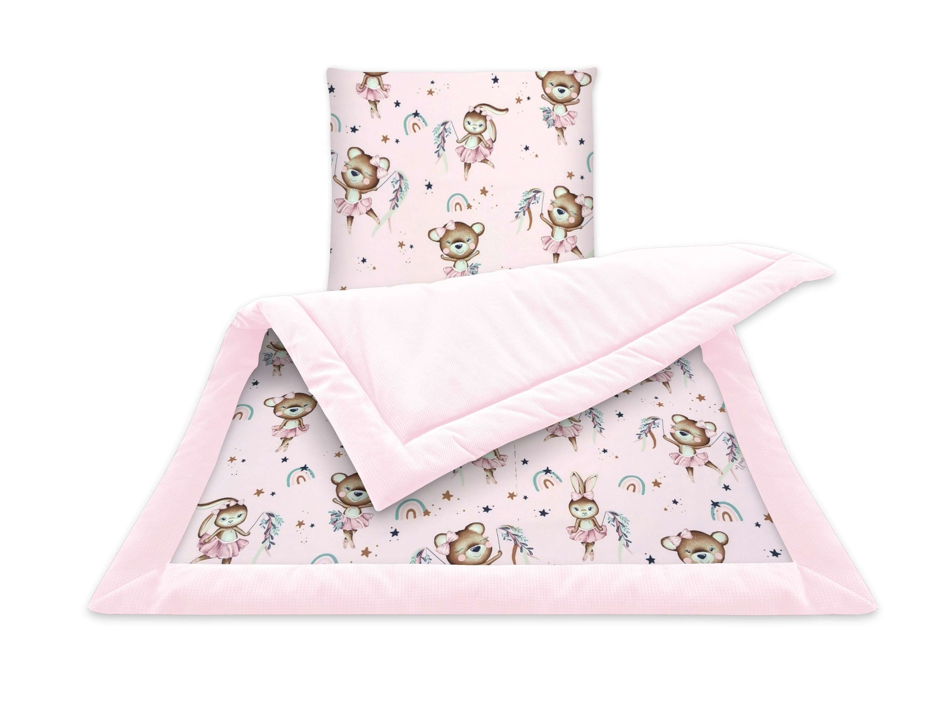 See komplekt sobib kasutamiseks kärus, võrevoodis või väiksemas võrevoodis. Valmistatud kvaliteetsetest kaasaegsetest materjalidest peente moekate mustritega.