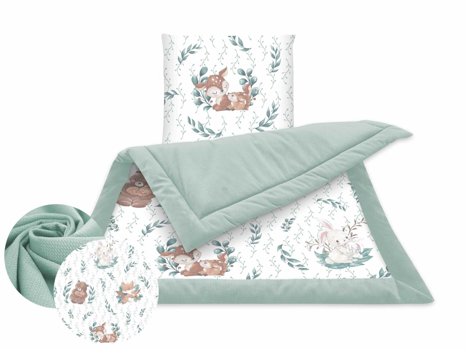 Этот набор подходит для использования в коляске, детской кроватке или детской кроватке меньшего размера. Изготовлен из высококачественных современных материалов с тонкими модными узорами.
