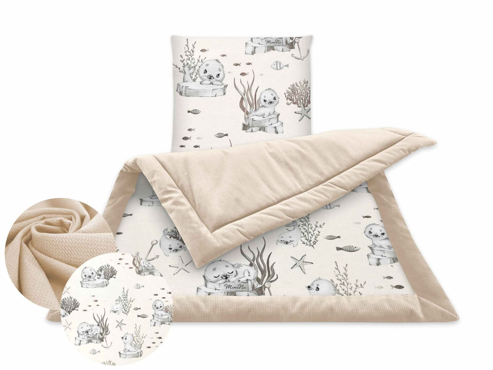 See komplekt sobib kasutamiseks kärus, võrevoodis või väiksemas võrevoodis. Valmistatud kvaliteetsetest kaasaegsetest materjalidest peente moekate mustritega.