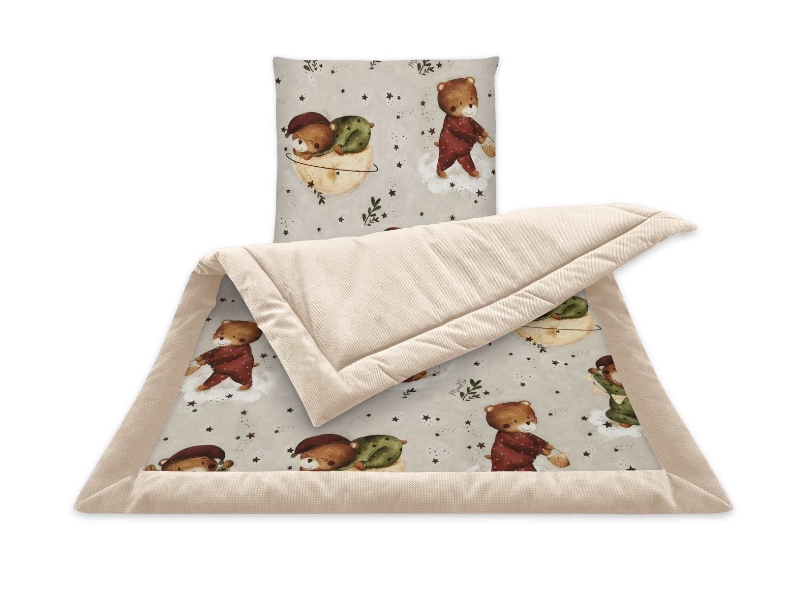 See komplekt sobib kasutamiseks kärus, võrevoodis või väiksemas võrevoodis. Valmistatud kvaliteetsetest kaasaegsetest materjalidest peente moekate mustritega.