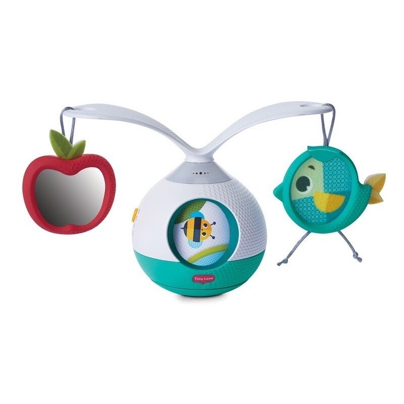 Žaislas turi balansavimo judesį ir 360° besisukančias rankeles su kabančiomis, draugiškomis gyvūnų figūrėlėmis, veidrodžiu ir spiraline grafika, kad skatintų kūdikį nuolat pakelti galvytę.
