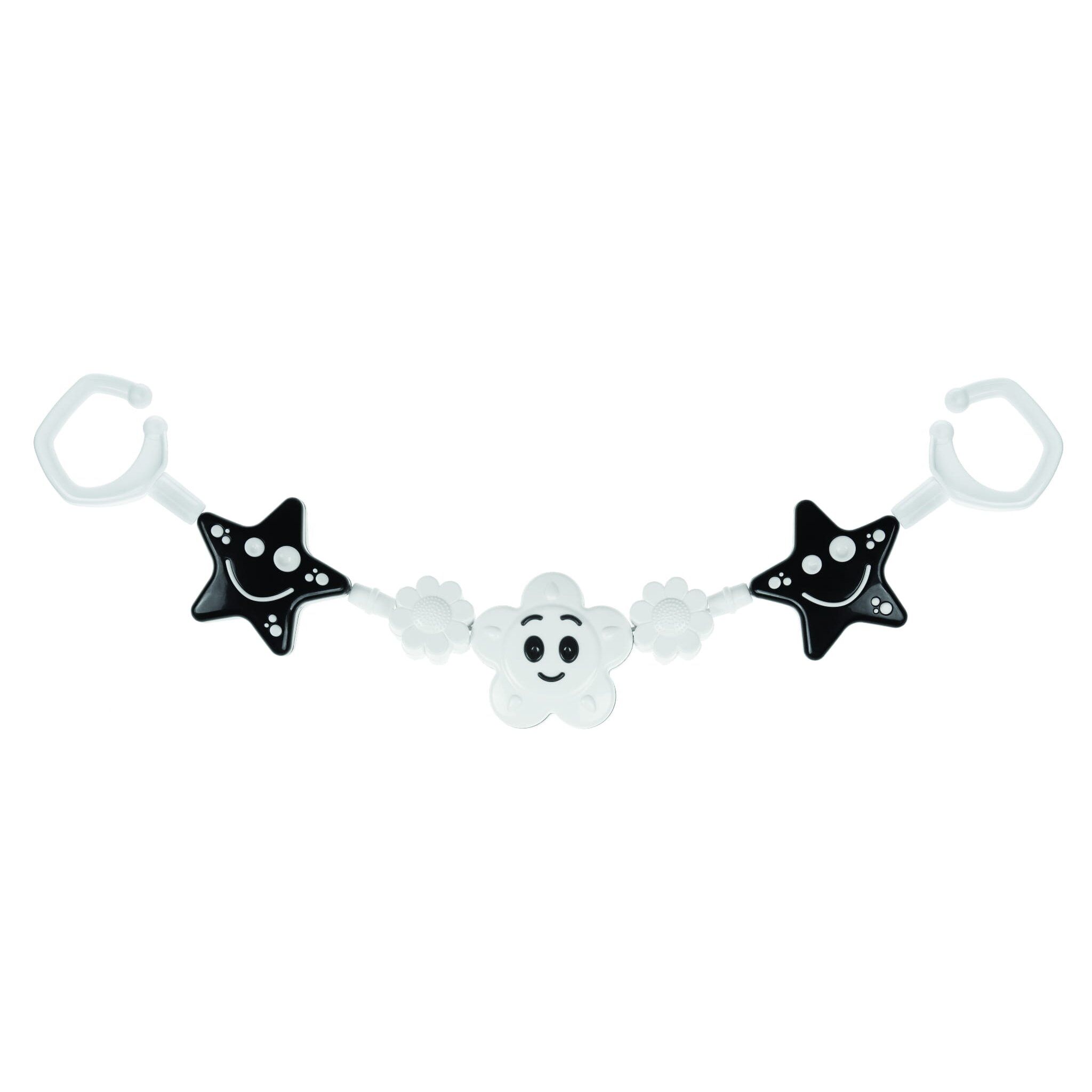 Tullo barškutis vežimėliui juoda - balta žvaigždutės / gėlytė 178