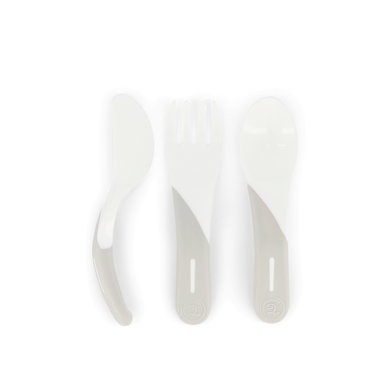 Twistshake Learn Cutlery – tai idealus rinkinys jūsų mažylio pirmiesiems bandymams valgyti savarankiškai. Šis pilnas rinkinys apima šakutę, peilį ir šaukštą, sukurtus specialiai mažoms rankytėms. Trumpi koteliai ir guminis paviršius užtikrina patogų ir saugų suėmimą.