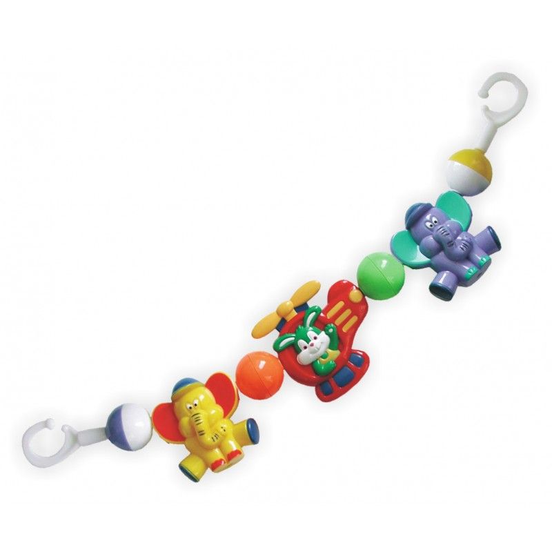 Kinnitatav lapsevankri, beebitooli või voodi külge. Rippuvad mänguasjad ergutavad beebi tähelepanu ja ta saab neid katsuda.