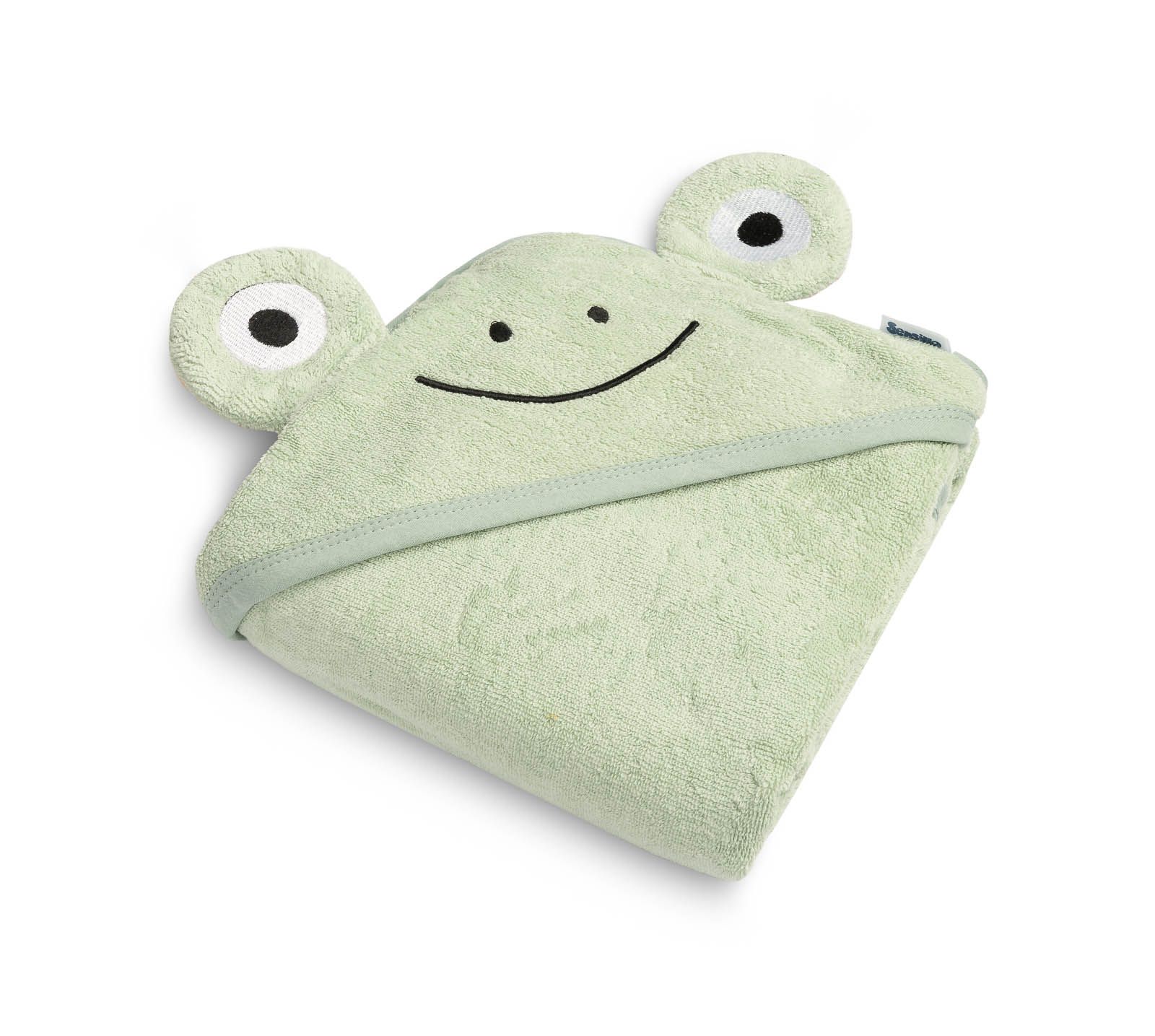 Rätik beebile kapuutsiga "Frog" 90x90 cm green Laost otsas
