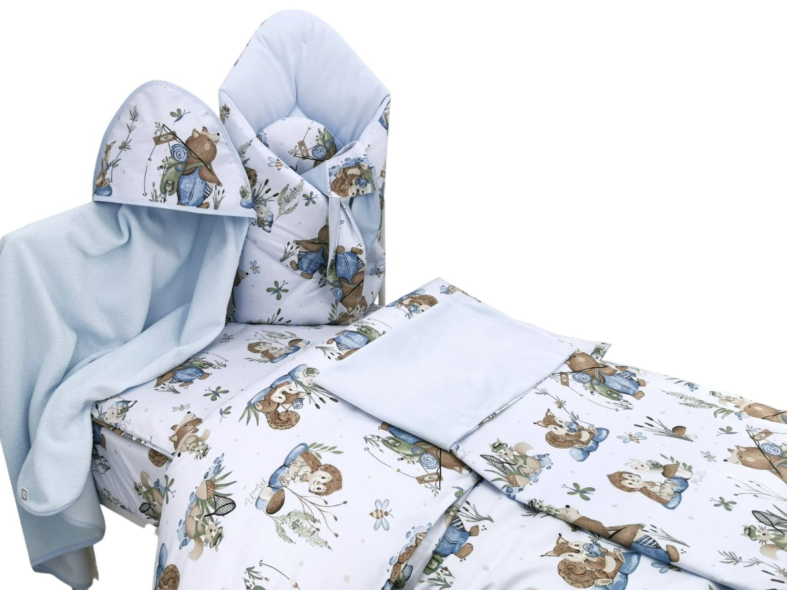 Beebi voodipesukomplekt + voodilina on valmistatud pehmest puuvillast, mis muudab teie beebi une meeldivamaks. Pehme disain ja värvid muudavad voodipesu pehmeks ja elegantseks. See täiendab suurepäraselt lastetoa sisekujundust.