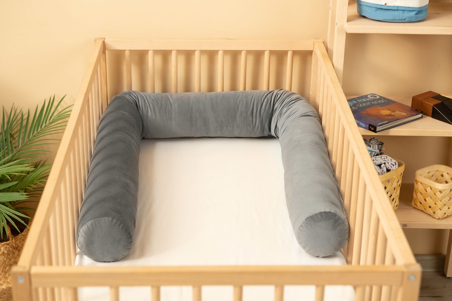 Rullikujuline võrevoodikaitse aitab tagada laste turvalisuse ja mugava une. See hoiab ära voodi äärte löömise ja isoleerib seina külma eest. Asetades selle ukse või akna alla, saad seda kasutada tuuletõmbuse eest kaitsjana. Selle universaalse suuruse tõttu sobib see kasutamiseks imikutele, lastele ja täiskasvanutele. Kaitse on pehme ja painduv ning materjal ja täidis ei kaota oma omadusi vaatamata korduvale pesemisele. Täidis on allergiavastane.